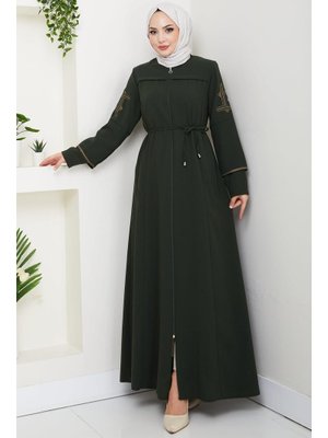Hafsa Mina Haki Bağcıklı Kolu Nakışlı Ferace