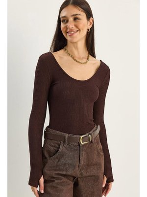 Bianco Lucci Acı Kahve U Yaka Likralı Basic Bluz