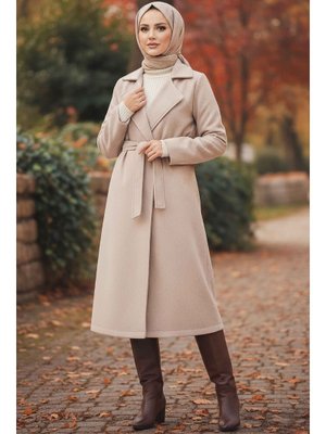 Tofisa Bej Kuşaklı Kaşe Kaban