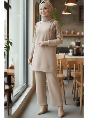 Tofisa Krem Taş Detaylı Modal İkili Takım