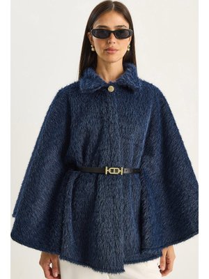 Bianco Lucci Lacivert Tek Düğmeli Beli Kemerli Sakallı Yumoş Panço
