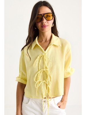 Bianco Lucci Limon Sarısı Bağlama Detaylı Kolları Büzgülü Müslin Crop Gömlek