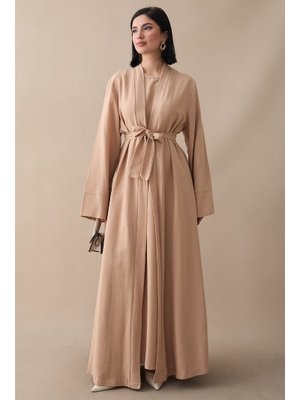 InStyle Truvakar Kol Abayalı Elbiseli Bej Keten Takım