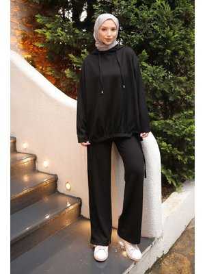 İmaj Butik Siyah Ön Detaylı Modal Tunik Pantolonlu Takım