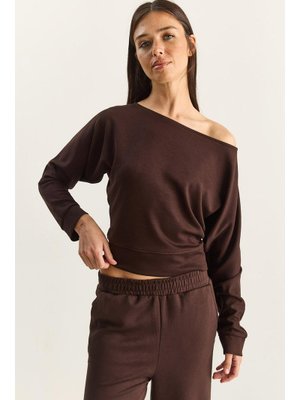 Bianco Lucci Kahverengi Açık Omuzlu Yumuşak Modal Bluz