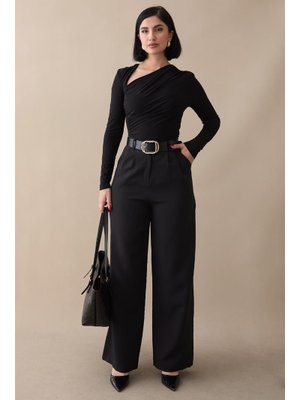 InStyle Yüksek Bel Pileli Siyah Palazzo Pantolon