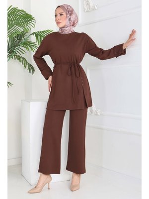 Tofisa Kahve Düğme Detaylı Modal İkili Takım