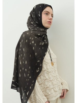 FRESHSCARFS Siyah Fawn Desenli Pamuk Viskon Şal