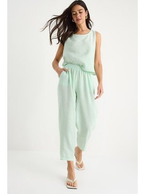 Bianco Lucci Su Yeşili Kalın Askılı Bluz Beli Lastikli Pantolon Modal Takım