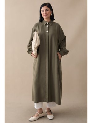 InStyle Gömlek Yaka Keten Haki Salaş Tunik