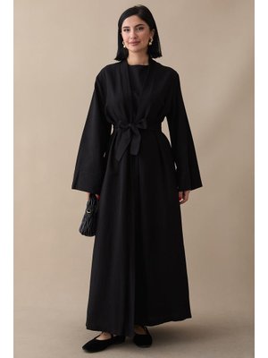 InStyle Truvakar Kol Abayalı Elbiseli Siyah Keten Takım