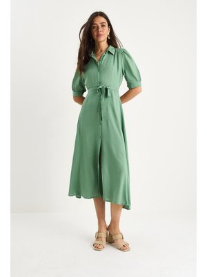 Bianco Lucci Çağla Yeşili Kuşaklı Yazlık Gömlek Elbise