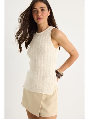 Bianco Lucci Ekru Bisiklet Yaka Fitilli Triko Bluz