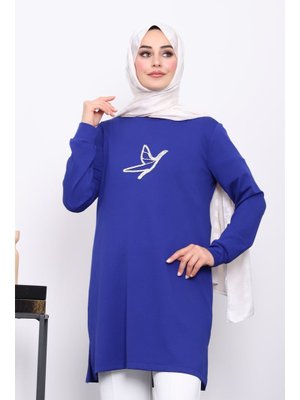 İmaj Butik Saks Mavi Taş Baskılı Modal Tunik
