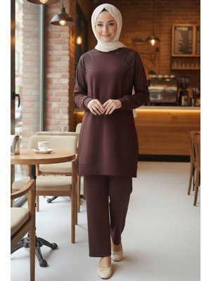 Tofisa Kahve Taş Detaylı Modal İkili Takım