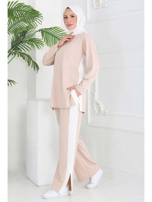 Tofisa Krem Garnili Yırtmaçlı Modal İkili Takım
