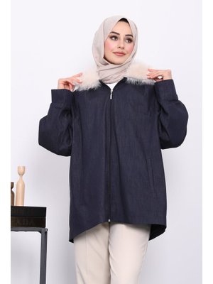 İmaj Butik Lacivert Yaka Kürk Detaylı Kot Ceket