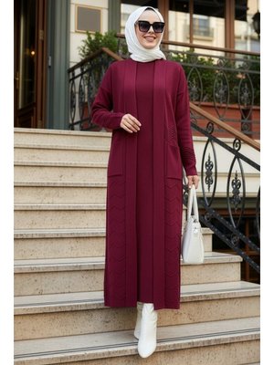 Neva Style Hırkalı Bordo Elbise Triko Takım 70271br