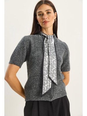 Bianco Lucci Füme Fular Aksesuarlı Kısa Kollu Triko Hırka