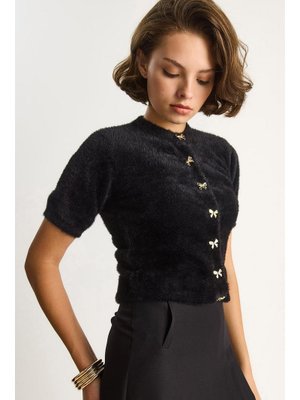 Bianco Lucci Siyah Fiyonk Düğme Detaylı Yumuşak Dokulu Triko Hırka