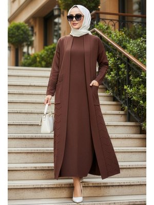 Neva Style Hırkalı Kahverengi Elbise Triko Takım 70271kh