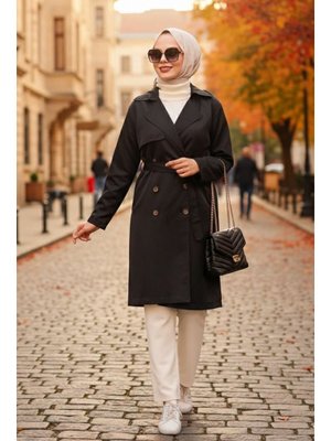 Neva Style Düğmeli Siyah Trençkot 263s