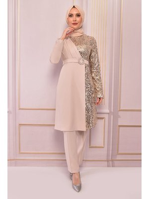 Modanisa Mood Bej Payet Detay Kombin