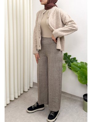 Salih Çelebi Kahverengi Kaşe Balıksırtı Desenli Pantolon