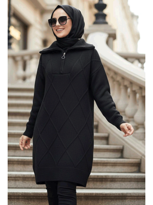 Neva Style Baklava Detaylı Siyah Triko Kazak Tunik 83961s