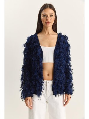 Bianco Lucci Lacivert Saçaklı Triko Hırka