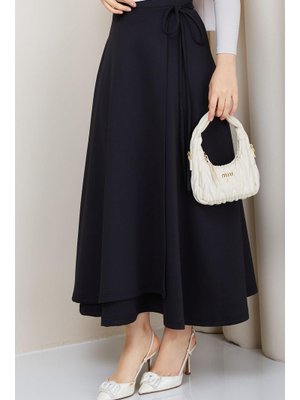 Hafsa Mina Siyah Yandan Bağlamalı Scuba Etek