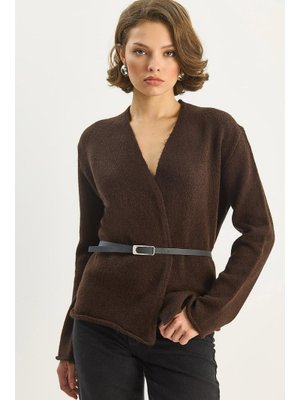 Bianco Lucci Acı Kahve Kemer Detaylı Triko Hırka