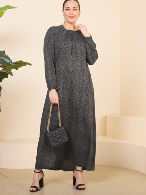 Ferace Füme Kadin Buyuk Beden Çıtır Desen Uzun Anne Günlük Elbise