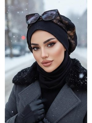 AİŞE TESETTÜR Siyah Bakır Garnili Bere