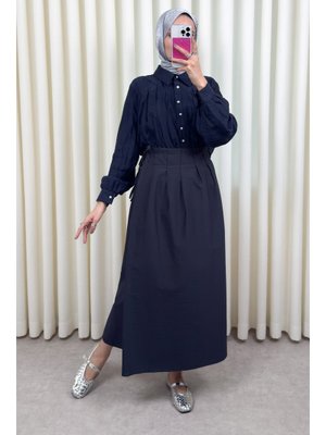 Salih Çelebi Lacivert Yan Bağlamalı Ayarlanabilir Etek