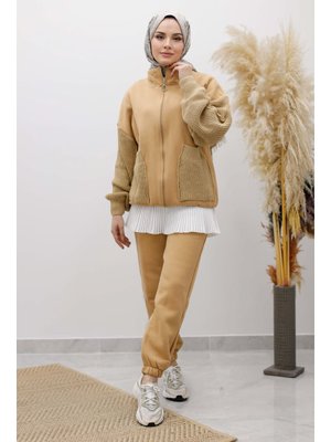 Tesettür Dünyası Taba Triko Detaylı Eşofman Takım