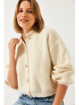 Bianco Lucci Bej Beş Düğmeli Yumoş Triko Hırka