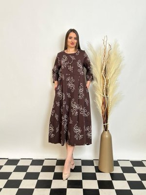 De White`s Büyük Beden Büzgü Cep Detaylı Kemerli Elbise Kahve