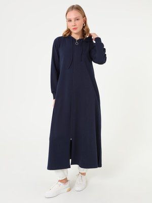 Benin Lacivert Fermuarlı Kapüşonlu Uzun Antik