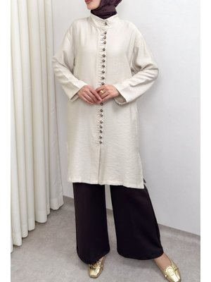 Salih Çelebi Taş Rengi Hakim Yaka Düğme Detaylı Tunik