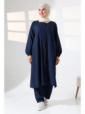 İhvanonline Lacivert Hac Ve Umre Kıyafeti Kraşlı İkili Takım
