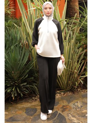 İmaj Butik Siyah Fermuarlı Garnili Sweat Pantolonlu Takım