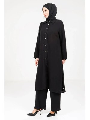 Beyza Siyah Düğmeli İkili Hac Ve Umre Kıyafeti