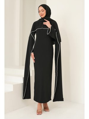 İmaj Butik Siyah İnci Detaylı Pelerinli Abiye Elbise