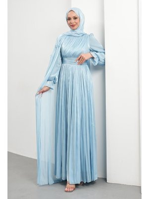 İmaj Butik Bebe Mavi Pelerin Detaylı Piliseli Abiye Elbise