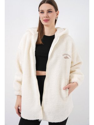 Bigdart Ekru Oversize Kapüşonlu Peluş Kaban