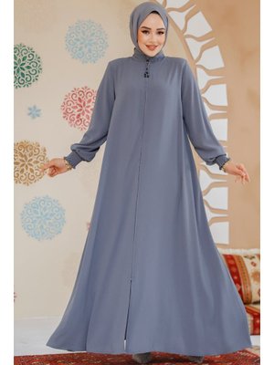 Neva Style Fermuarlı Gri Ferace 45287gr