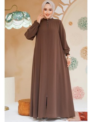 Neva Style Fermuarlı Kahverengi Ferace 45287kh
