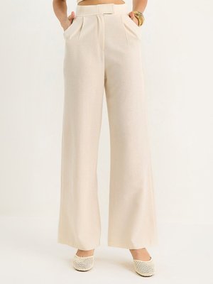Bianco Lucci Bej Cırtlı Cep Detaylı Keten Palazzo Pantolon