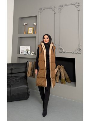 Volt Clothing Bej Çift Taraflı Dolgulu Kapüşonlu Dokuma Yelek Kahverengi